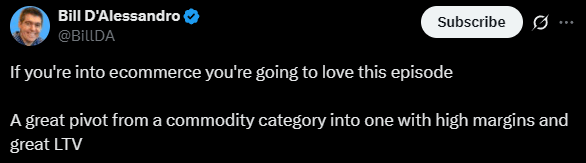 Appetizer: The Acquisitions Anonymous pod looked at a business that pivoted away from "motivational water bottles" to "hydration additives" — basically flavored salt. From our resident ecomm wizard Bill: