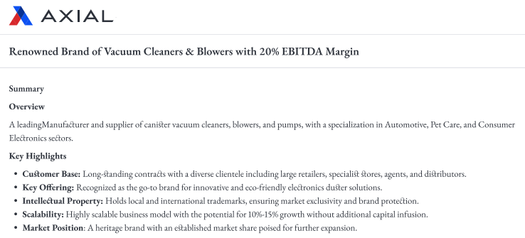 This week’s listing: This company is a legacy brand in the vacuum business. It makes regular vacuums and specialty vacuums, everything from giant car wash blowers to tiny dusters for cleaning electronic components. It also makes a killing on specialty replacement parts.