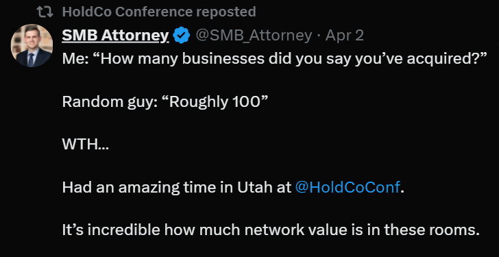 The biggest value of HoldCo Conference is the conversations.